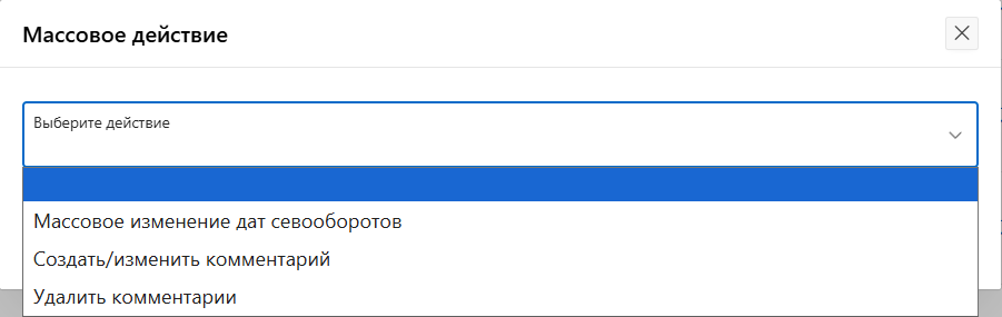 Меню «Массовое действие»