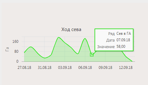 Назначение — Визуализация динамики посевных работ по дням. Кривая графика показывает, в какие даты и какая площадь была засеяна выбранной культурой.