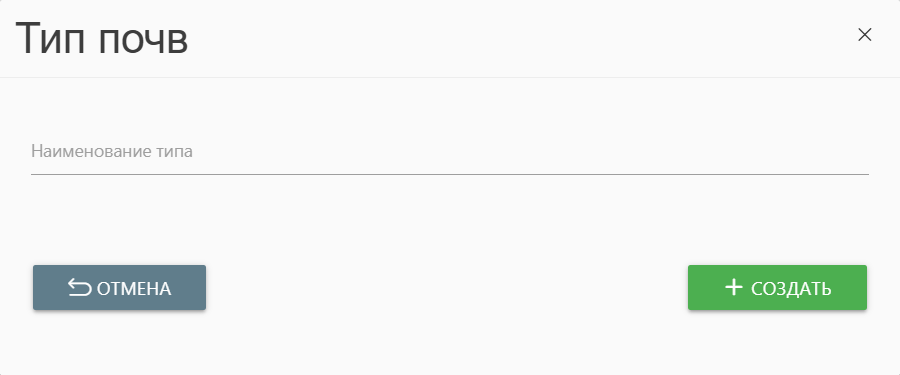 • Назначение модуля: Типы почв используются исключительно для описательной характеристики полей и не влияют на расчеты агротехнических мероприятий или нормы внесения материалов