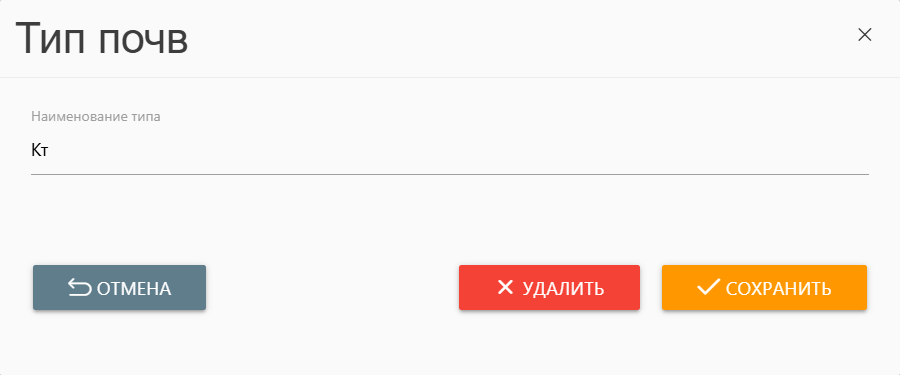 • «Главное меню» «Настройки» → «Справочники почв» → «Типы почв»