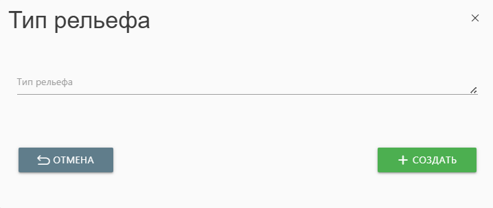 Кнопка «СОЗДАТЬ» - добавление нового типа рельефа