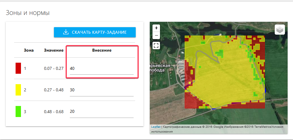 | 4 | Указать нормы внесения удобрений для каждой зоны | |