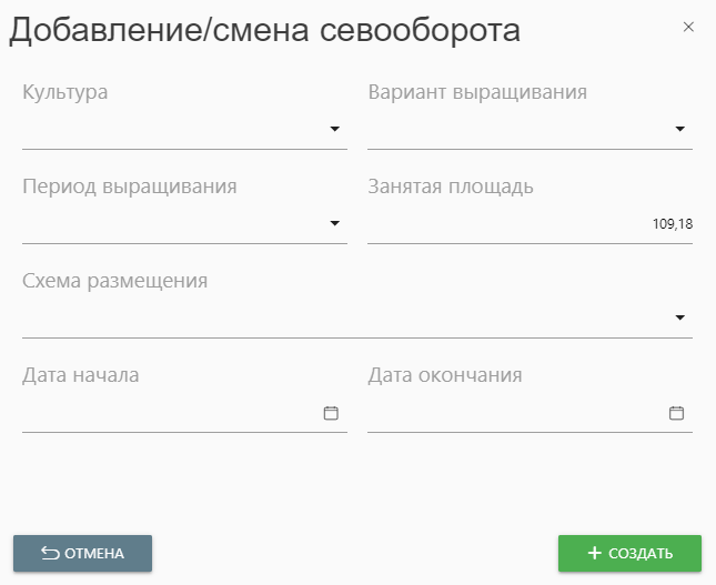 После заполнения всех полей нажмите "+Создать", чтобы сохранить новый севооборот.