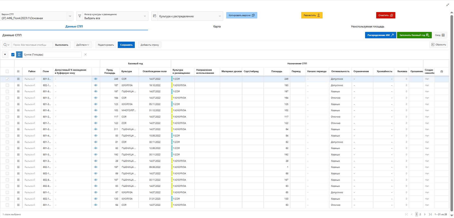Пред. площадь — площадь предыдущего размещения культуры (данные базового года)