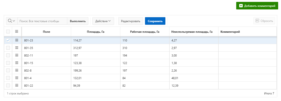 Комментирование причин неиспользования — обязательно указывайте причины неиспользования площадей в комментариях. Эта информация важна для планирования мелиоративных, очистных или коррекционных работ.