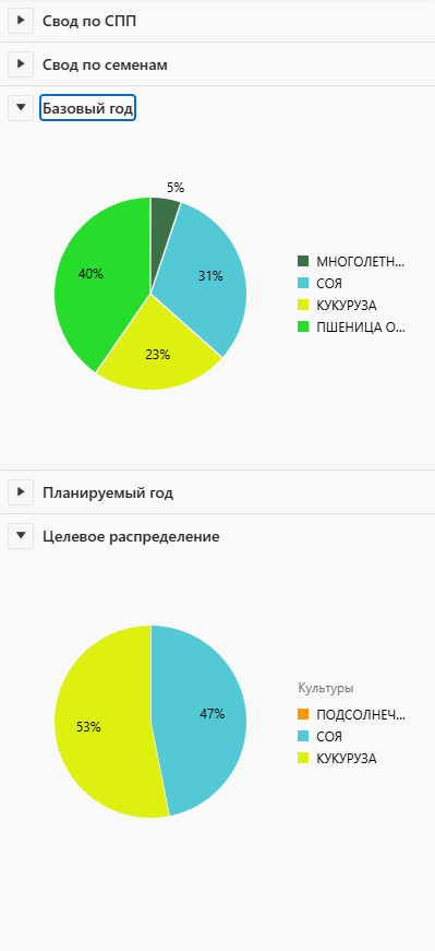 «Базовый год» — агрегированные данные по распределению культур в прошлом году