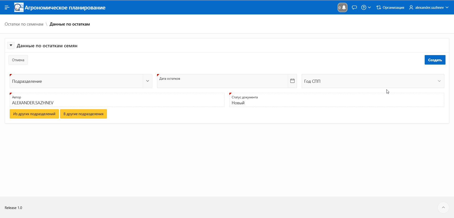Он обеспечивает сквозной цикл работы: от учёта фактических остатков семян на складах подразделений до их распределения по полям и формирования планов закупки или внутреннего перераспределения.