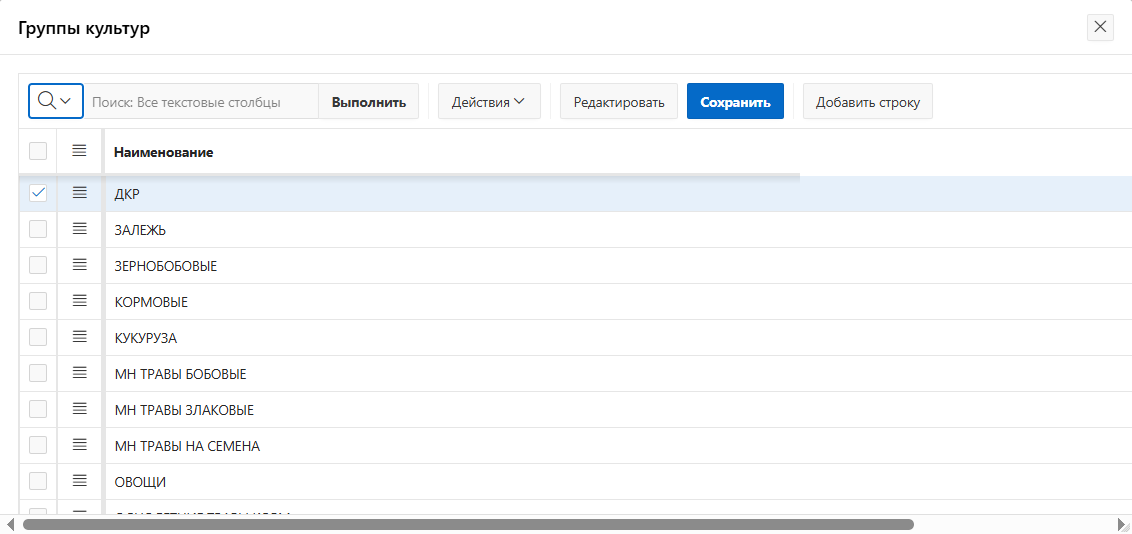 • Управление группами культур: Создание и редактирование групп для классификации и фильтрации культур в отчётах и интерфейсах планирования.