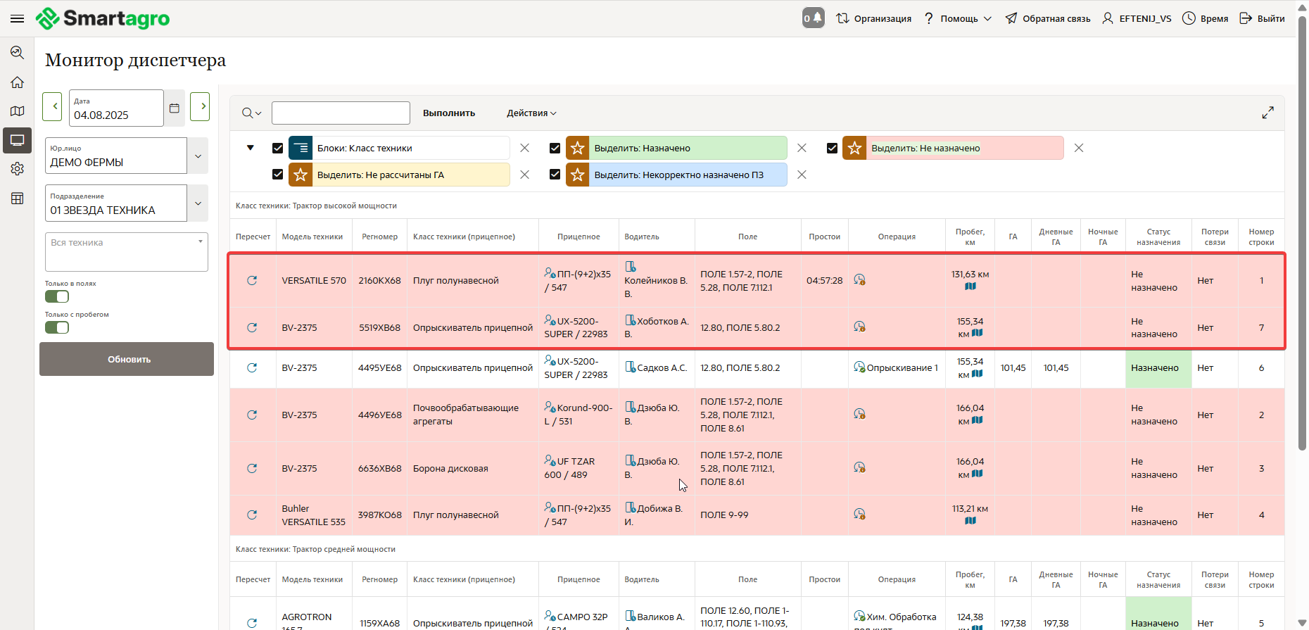 Монитор диспетчера - это инструмент, который в котором представлена возможность назначение полевых и вспомогательных работ, он формируется в разрезе подразделений Техники.