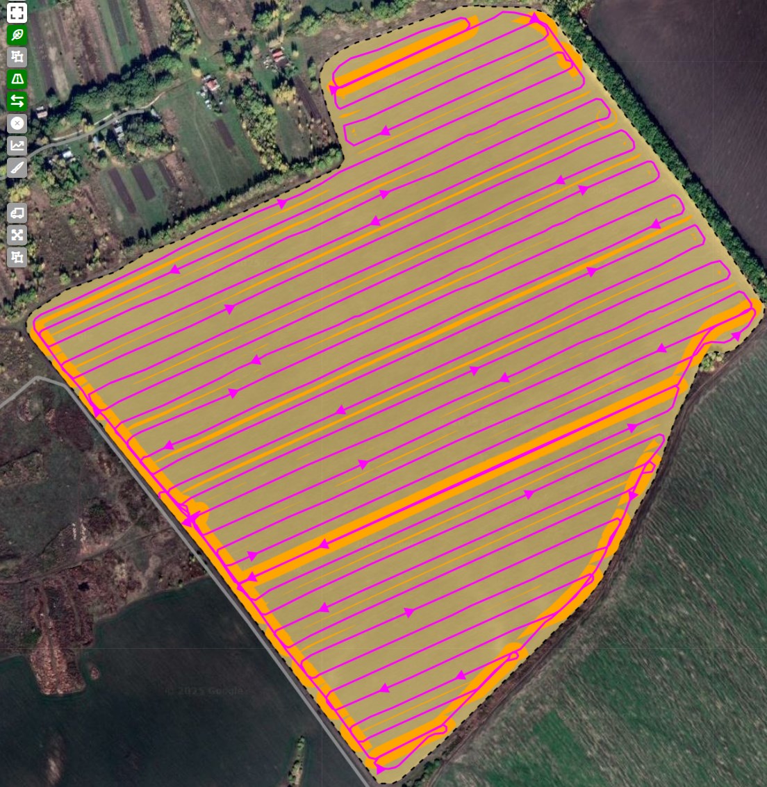 Отображает или скрывает линии движения техники по полю.