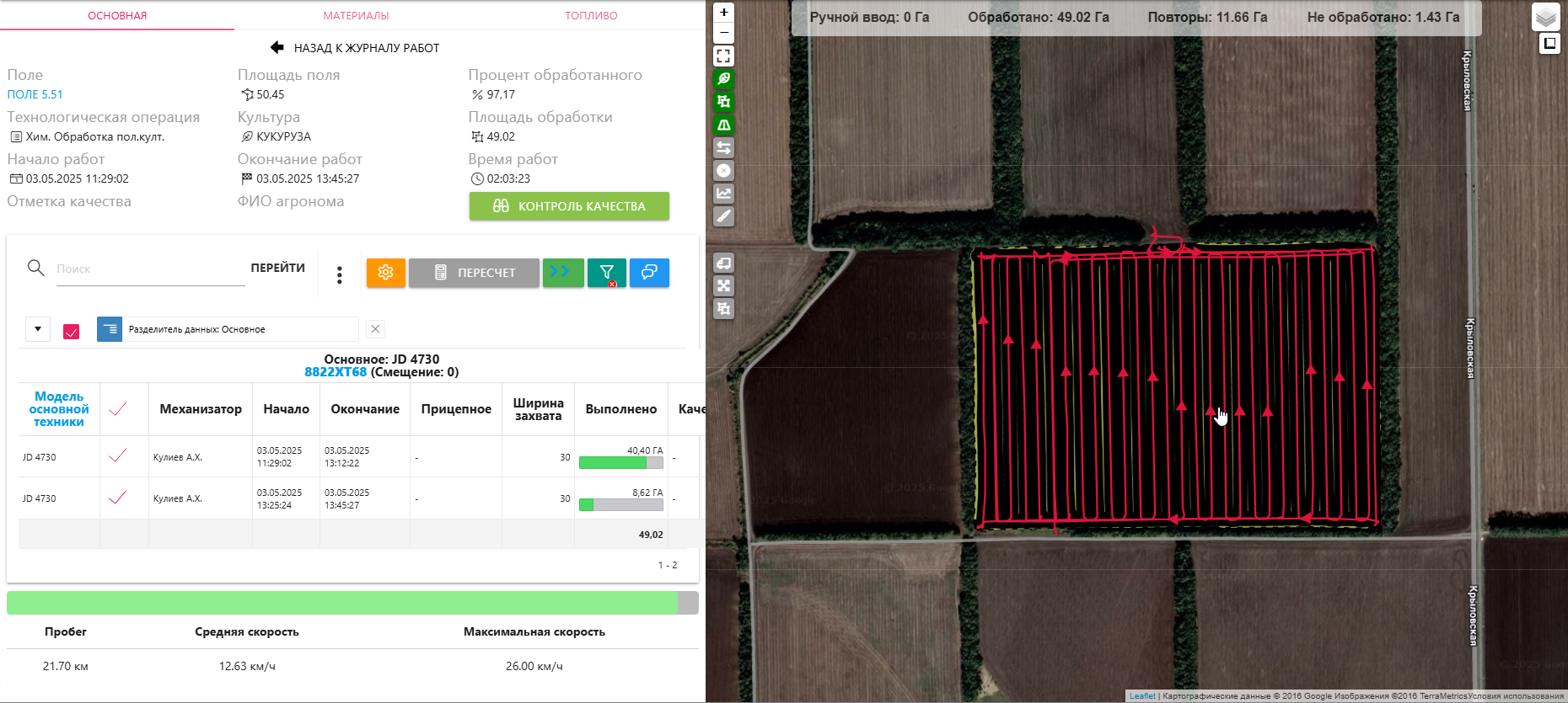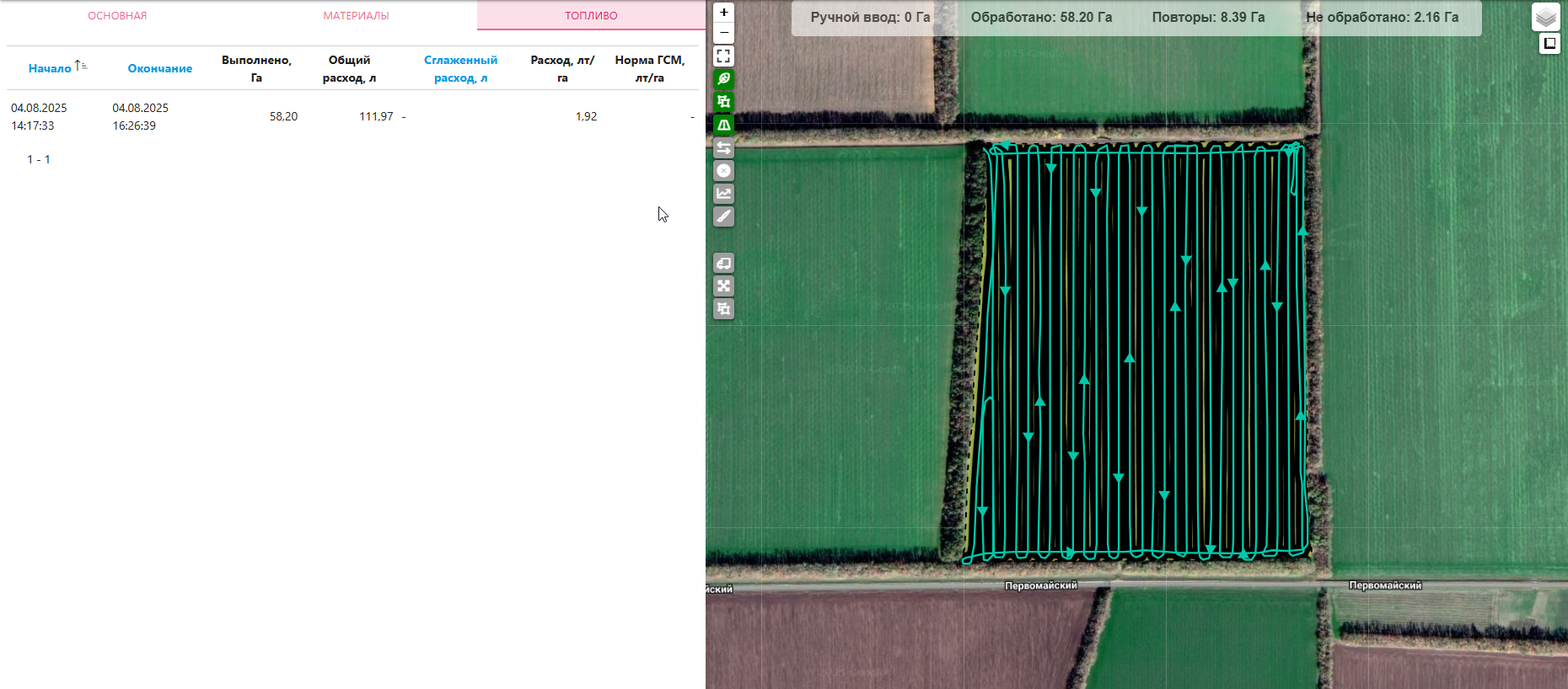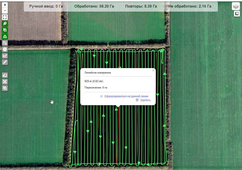Позволяет выявить необработанные участки, показывая их на карте.