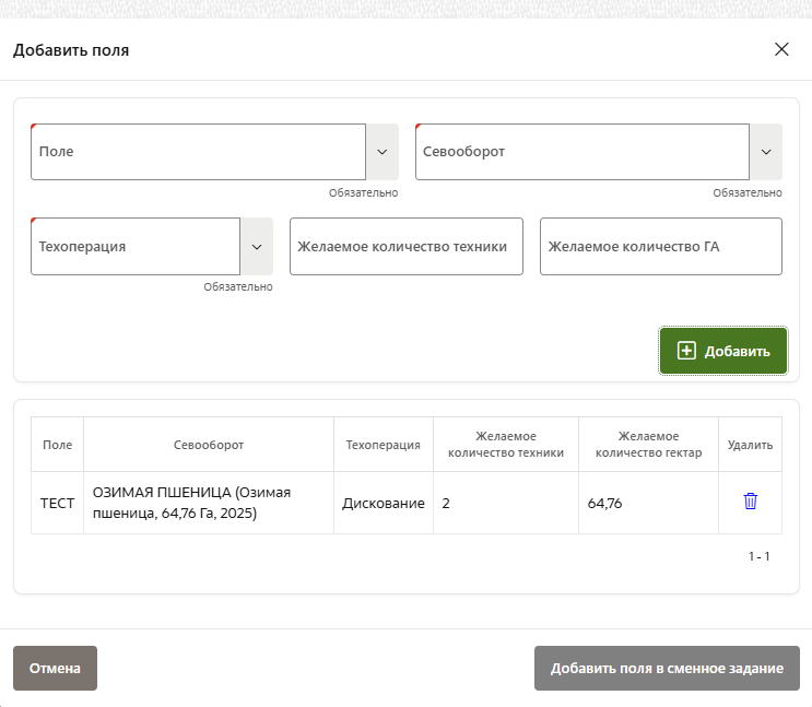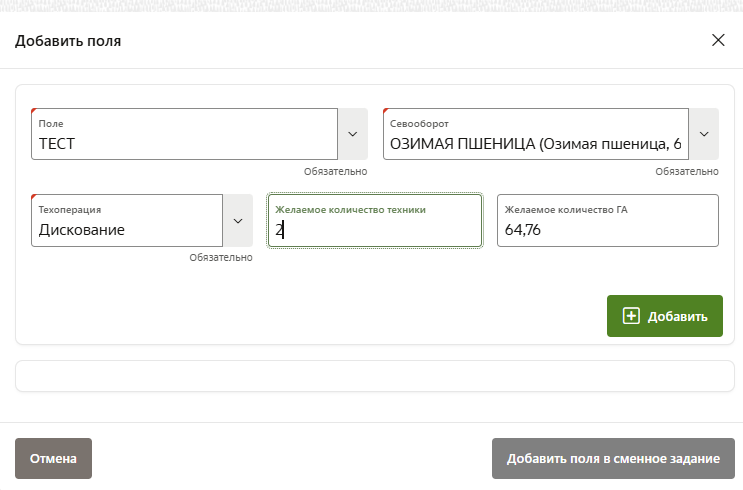 После внесения всех необходимых полей, воспользуйтесь кнопкой «Добавить поля в сменное задание»