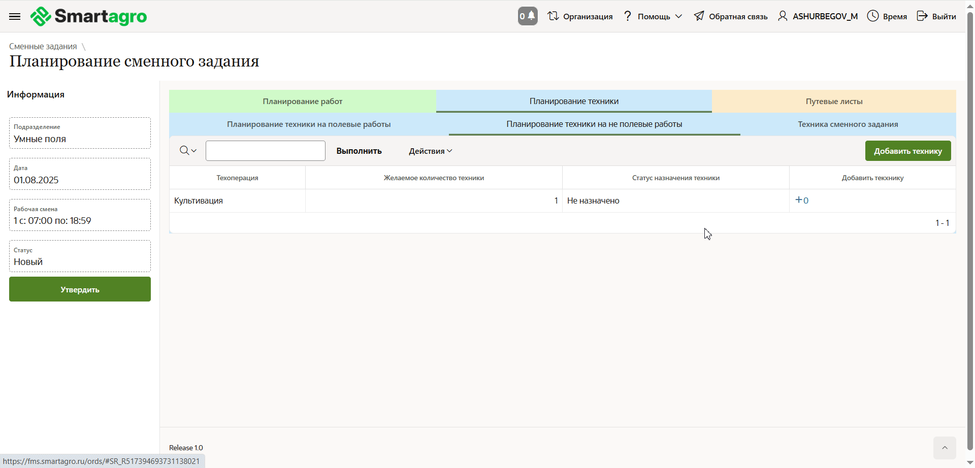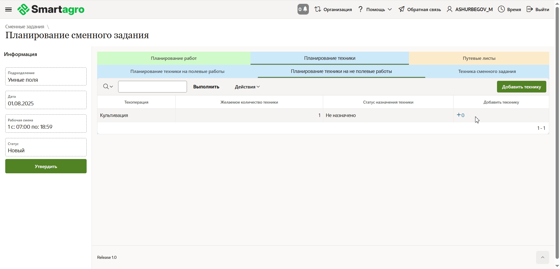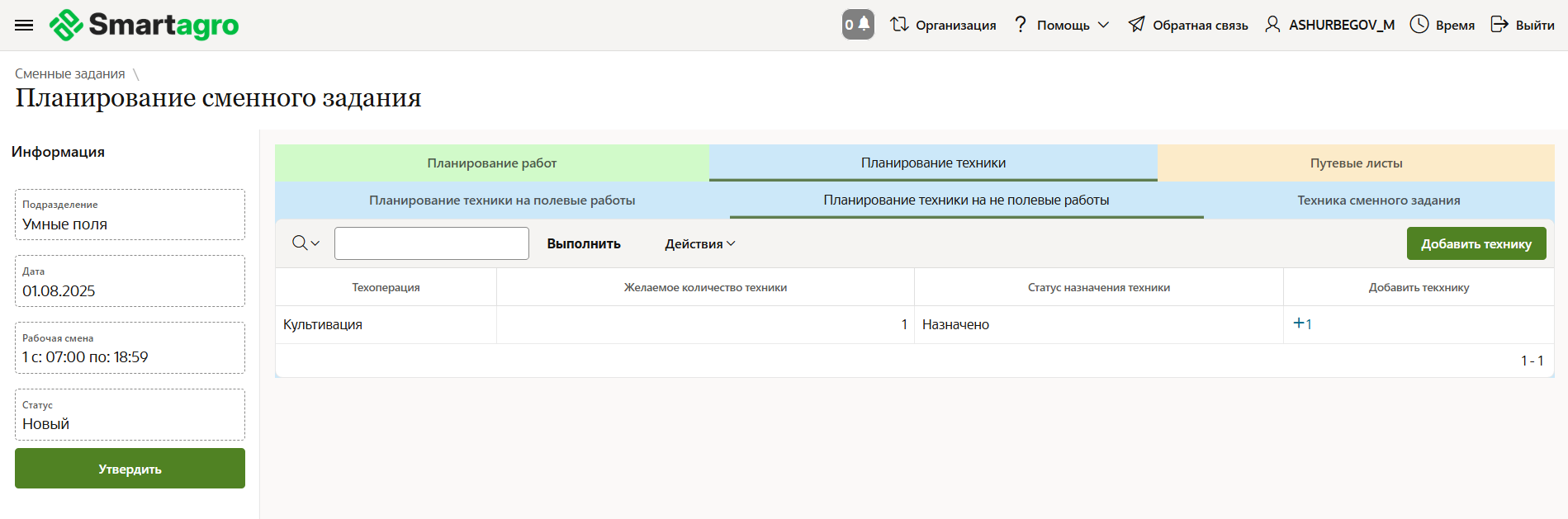 - Планирование техники на не полевые работы — Добавление и редактирование техники на не полевые работы