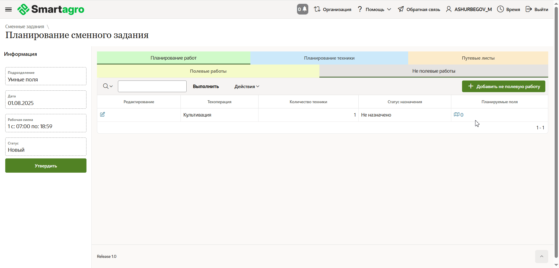 - Статус — Статус сменного задания (Новый/Утверждён).