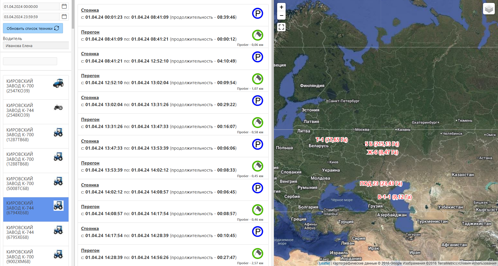 Для того, чтобы отобразить треки техники, необходимо выбрать из списка необходимую технику: