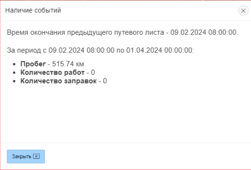 При наличии уже имеющихся событий по выбранной технике - откроется модальное окно "Наличие событий" с информацией: