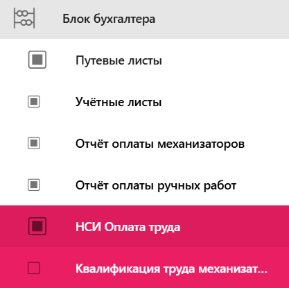 Для перехода необходимо зайти в Меню→ Блок бухгалтера→ НСИ Оплата труда → Квалификация труда механизаторов