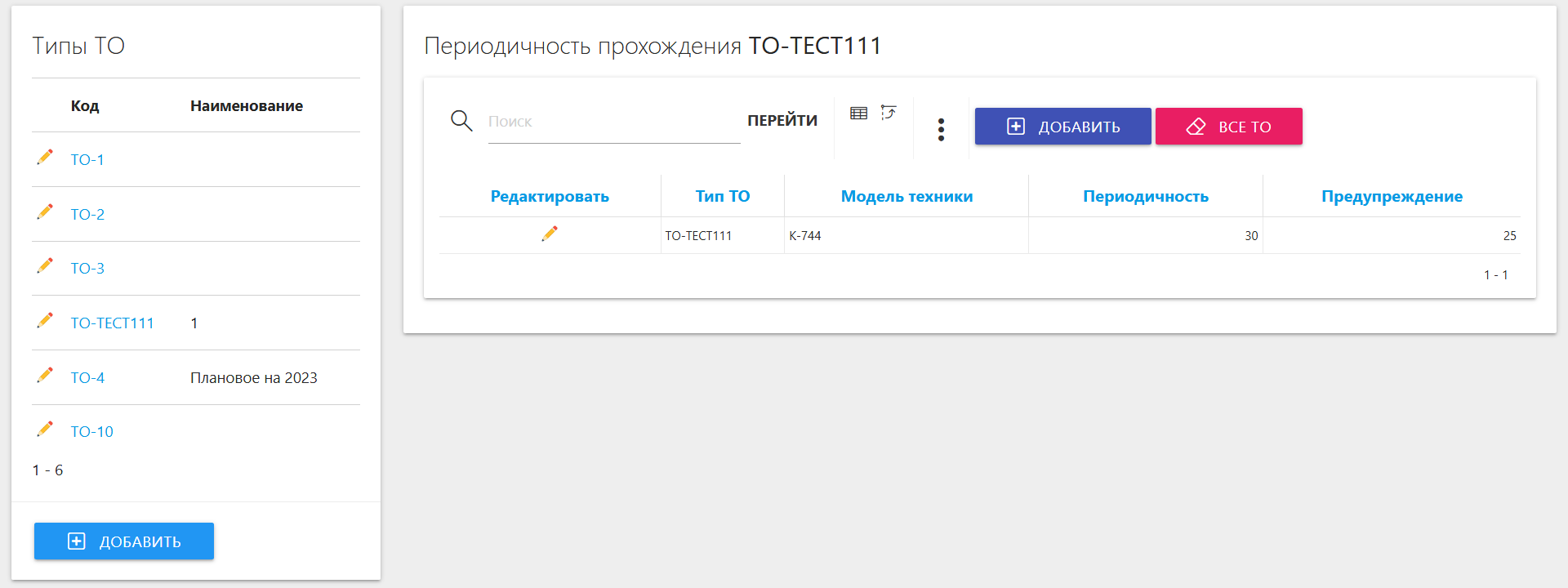 • Для просмотра всех зарегистрированных ТО используется кнопка "Все ТО".