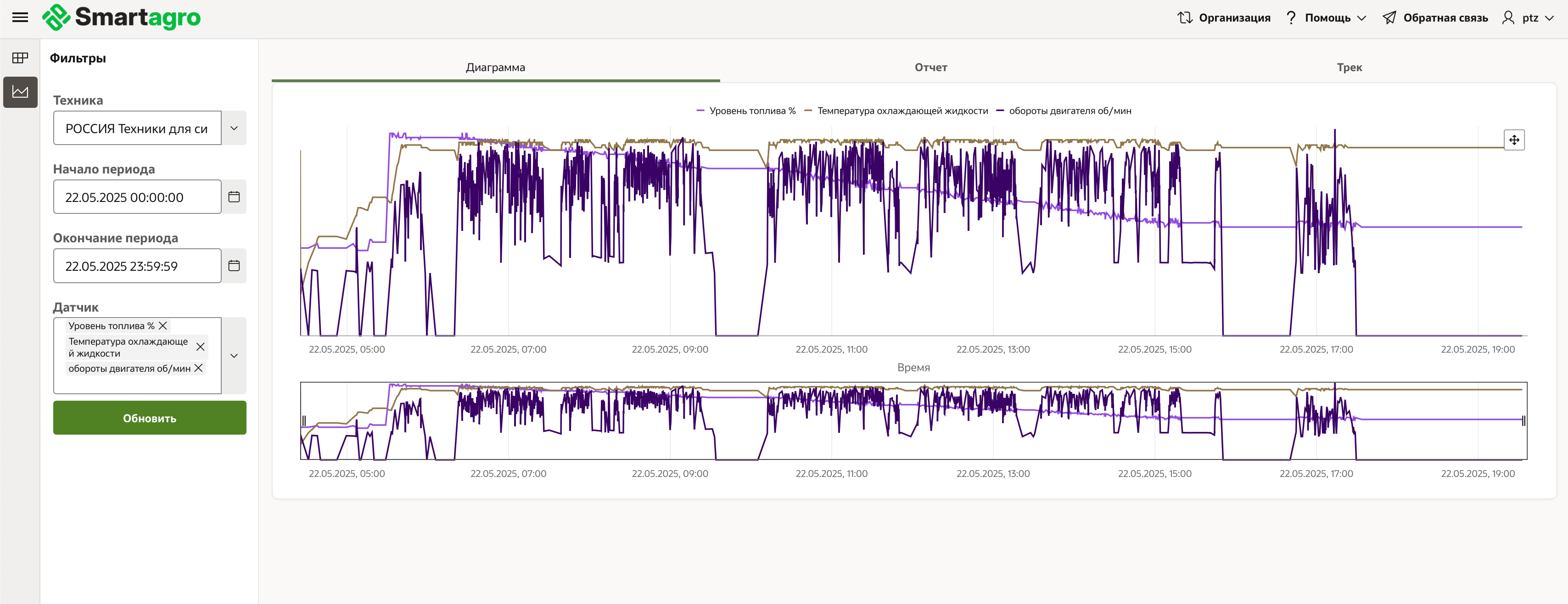 В разделе "Диаграмма" отображается график с информацией по выбранным датчикам
