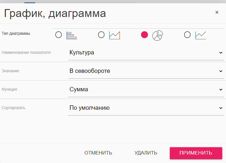 • Тип диаграммы определяет тип включаемой диаграммы. Выберите необходимый тип диаграммы.
