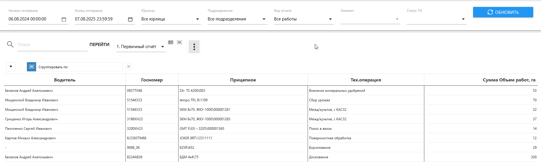 Функция группировки присутствует во многих разделах, соответственно настоящее руководство применимо ко многим данным системы.