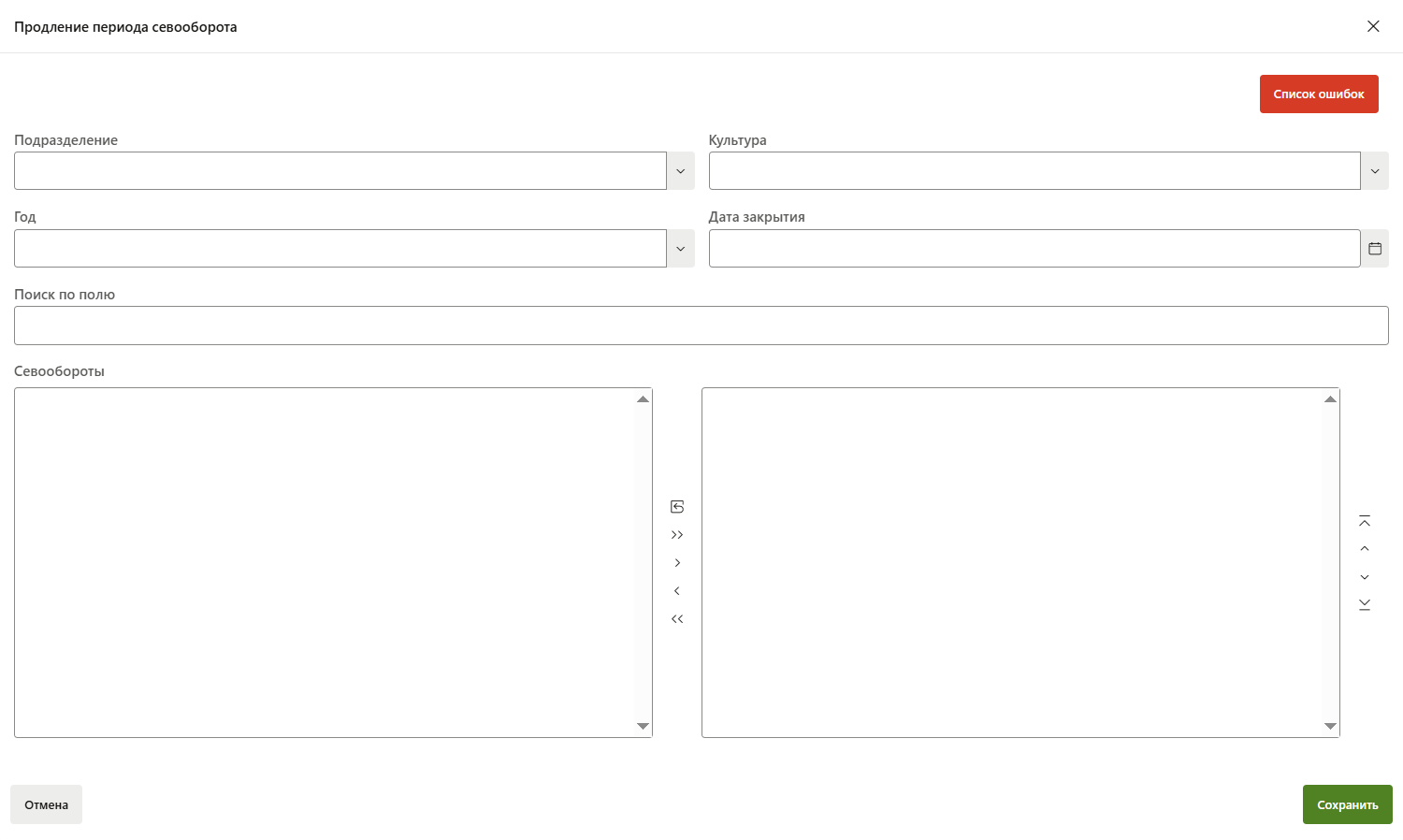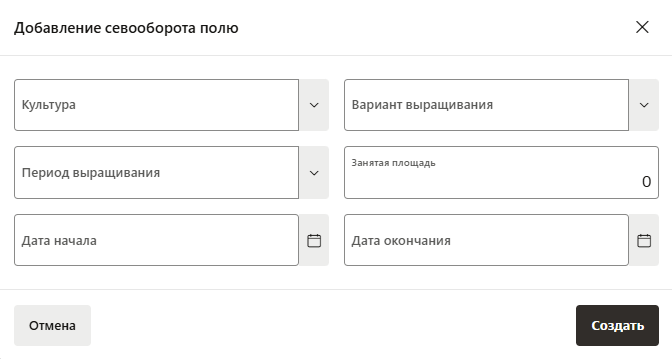 • Обязательное закрытие предыдущего севооборота перед созданием нового на том же поле