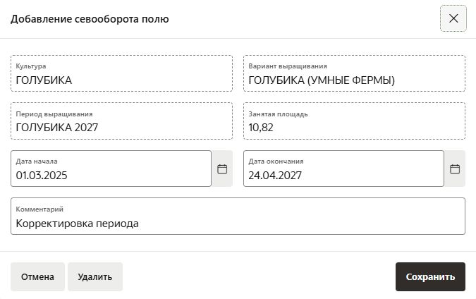 • Дата начала/Дата окончания - укажите временные границы севооборота