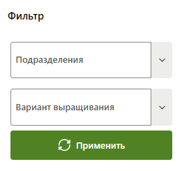 • Вариант - выбранный вариант выращивания (технологическая карта)