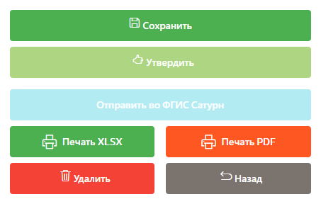 - Отправить во ФГИС Сатурн - инициирует передачу данных в государственную систему (для утвержденных актов)