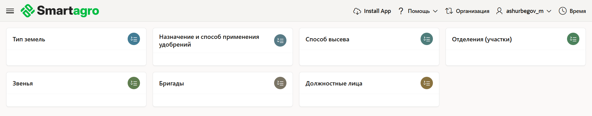 Интерфейс раздела организован в виде плиточного каталога. Каждая плитка соответствует одному справочнику.