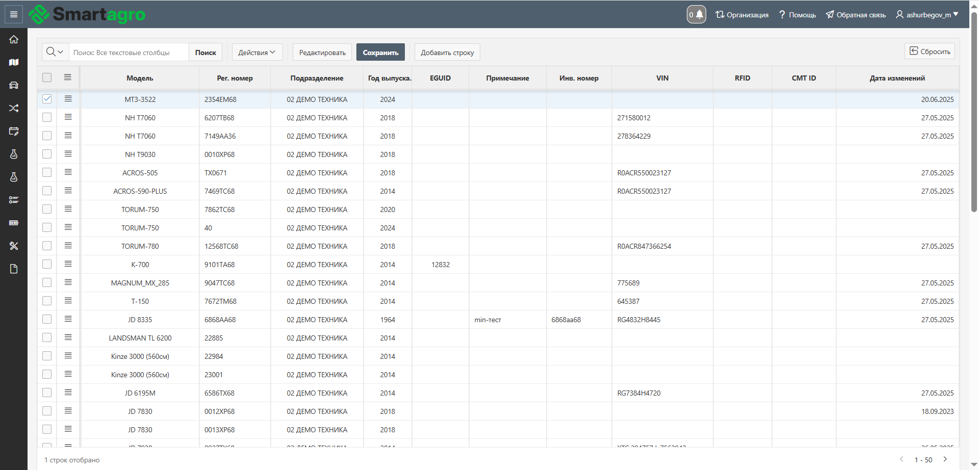 - Просматривать и редактировать записи о механизаторах в режиме отчёта;