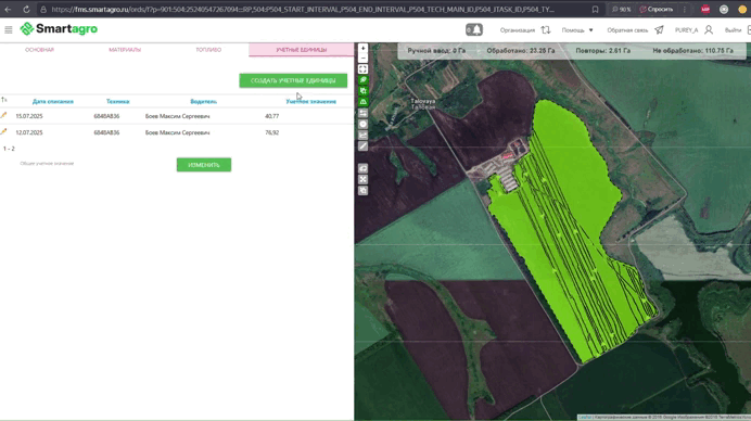 - Настроена технологическая операция "Обмолот", для нее добавлен новый коэффициент из п.2