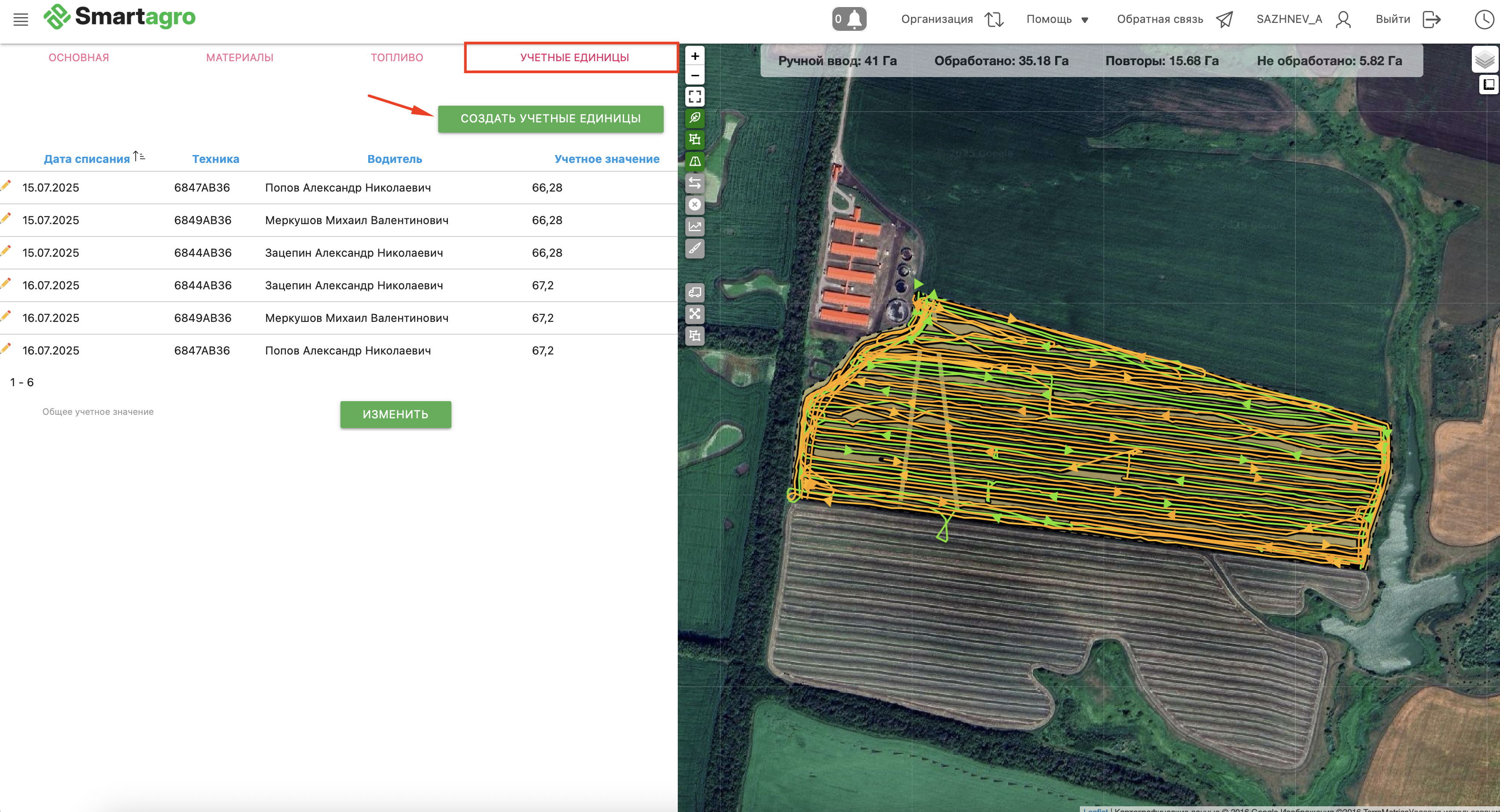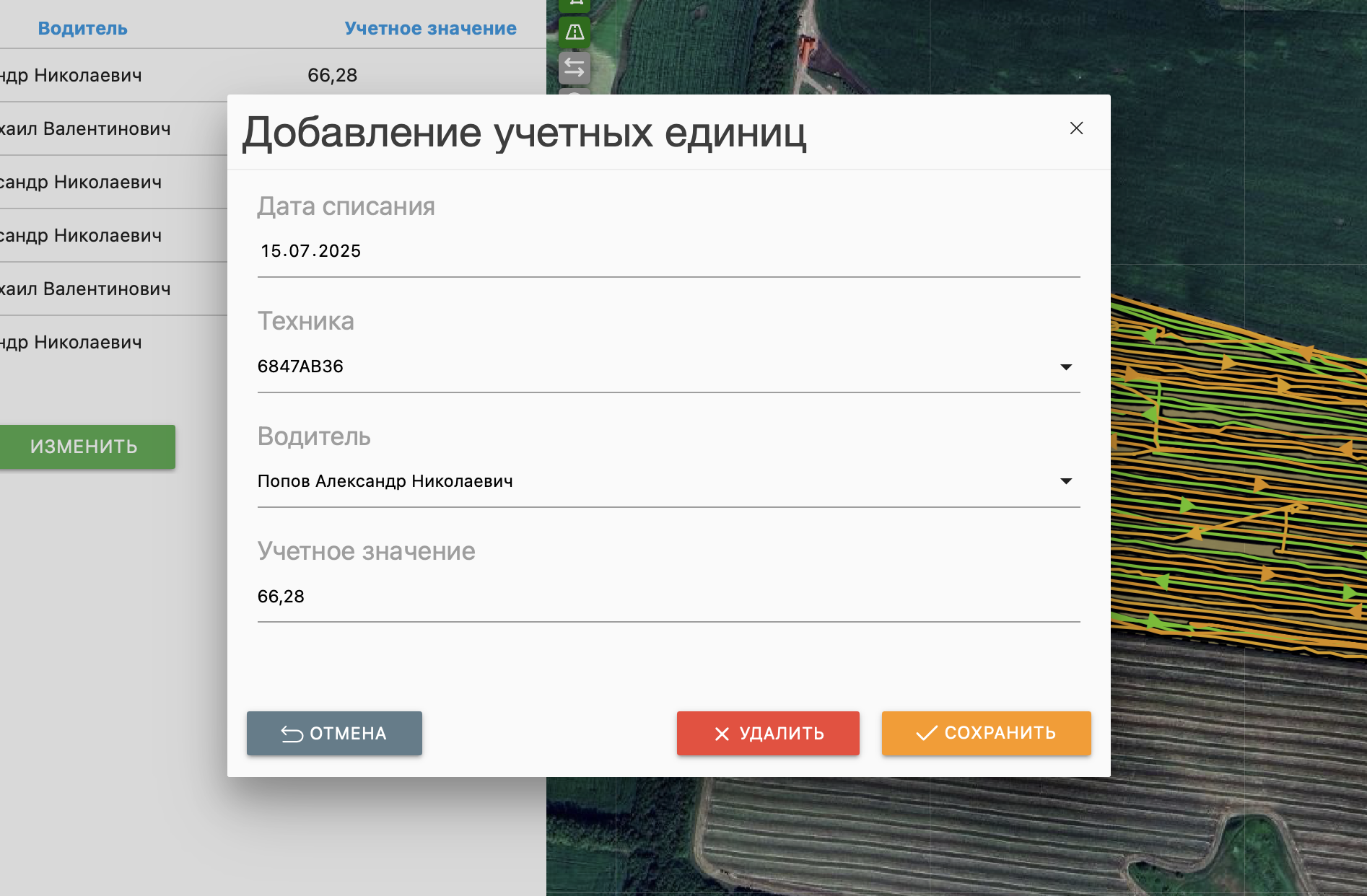 - Механизатора (в списке только те механизаторы, которые проводили данную работу)