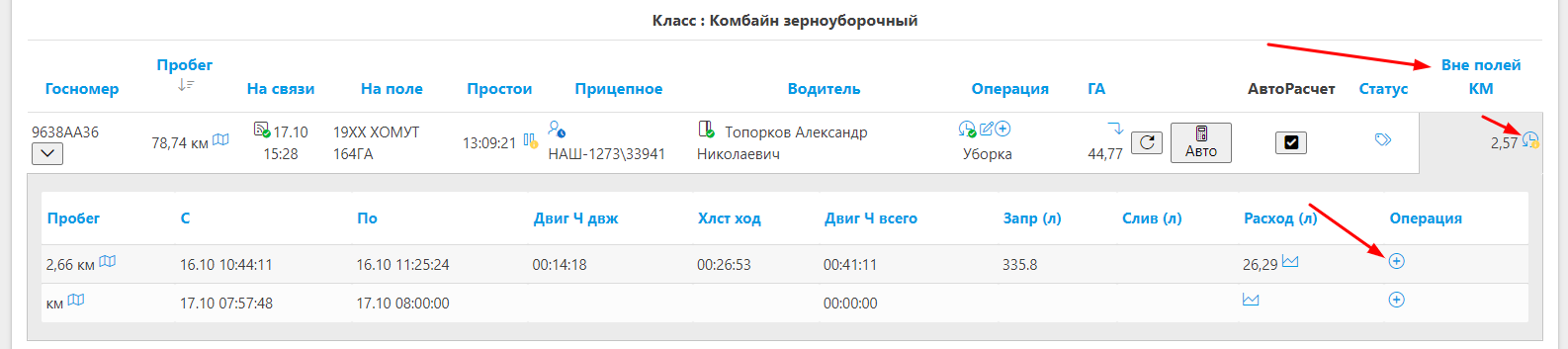 После чего у нас появляется столбец вне полей, для того чтобы посмотреть периоды вне полей мы должны нажать на 'часики' в соответствующем столбце, после чего мы можем назначить работу в открывшемся подпункте, для этого мы нажимаем на '+' в столбце операция и открывается окно назначения работы.