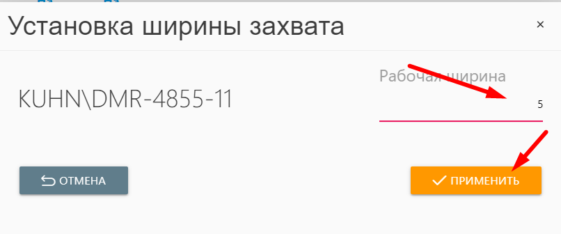 Нажмите на этот значок. В появившемся окне укажите ширину захвата орудия и нажмите применить