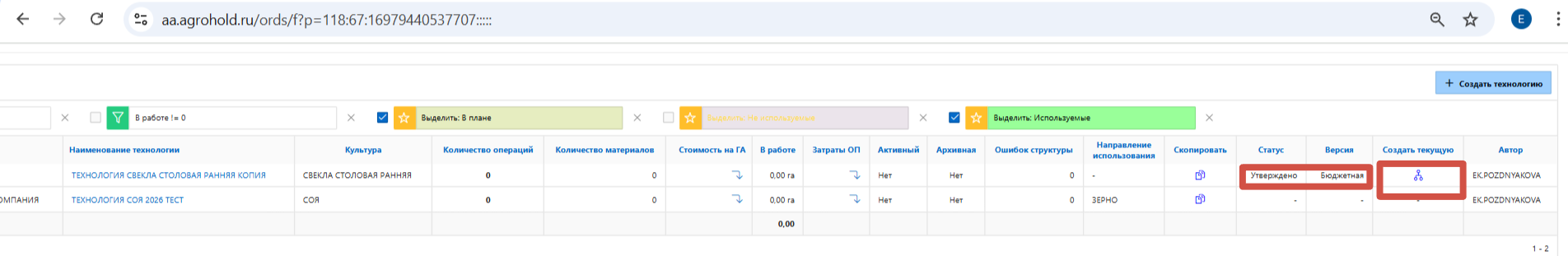 Рисунок 9 - Просмотр согласованных технологических карт