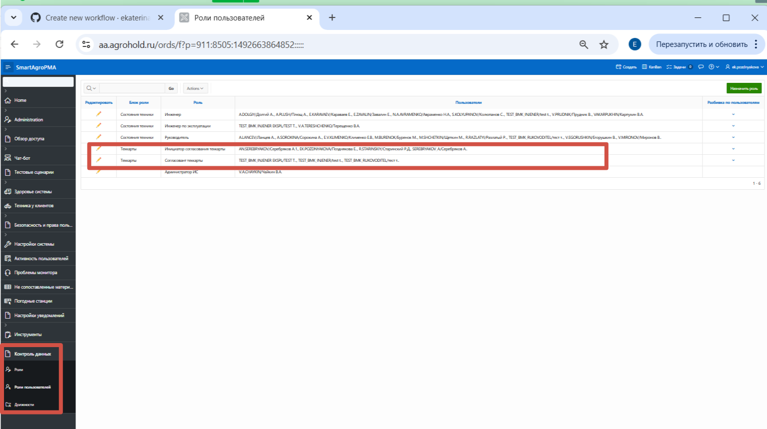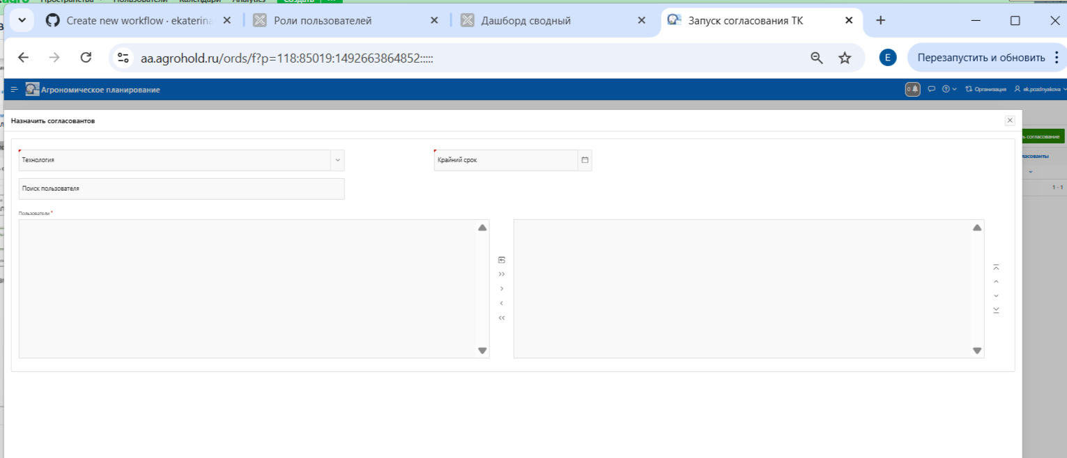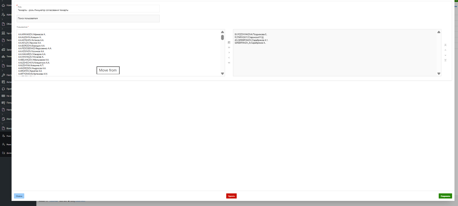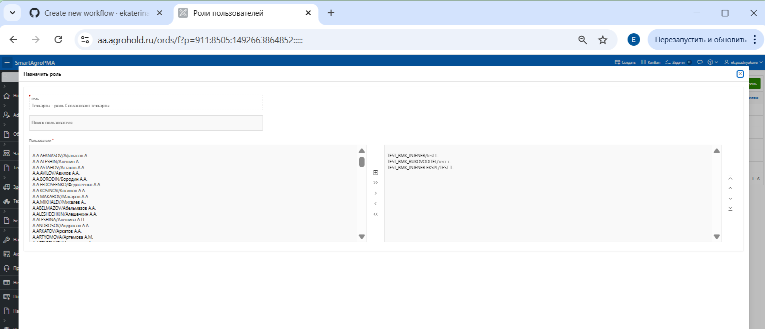 Рисунок 3 - Роль "Согласовант техкарты" - Добавление пользователей в роль.