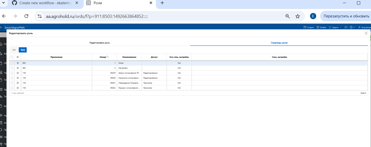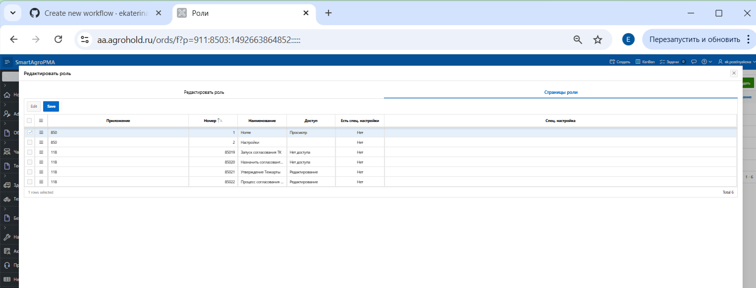 Для настроек доступа к страницам/функционалу необходимо зайти в меню → Роли → Карандаш → Вкладка "Страницы роли" (рисунки 2, 3).