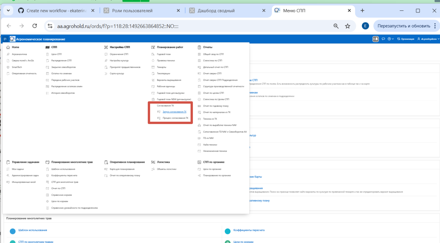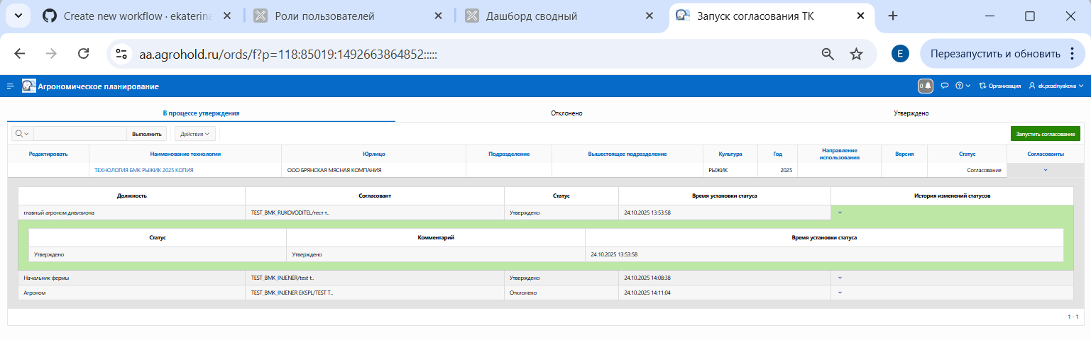 - Отклоненные техкарты можно повторно запустить на согласование.